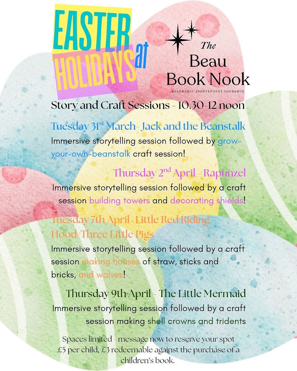 Story and Craft sessions at the Beau Book Nook - "Suitable for younger children, these immersive storytelling and craft sessions will give kids space for messy crafts without the clean-up!" Book quickly as very few spaces remain!
